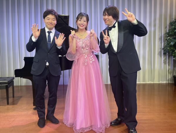 写真;左から、保坂 佑亮(ピアニスト)/ゲスト:畑村 瞳(ソプラノ歌手)/松本 友経(バリトン歌手)