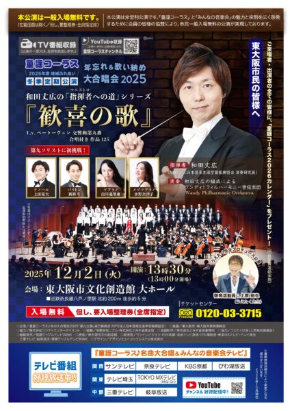 2025年11月28日(金)夜間、大阪のとあるスタジオで、いよいよ来週2日(火)に迫るワンディ!フィルハーモニー管弦楽団によるベートーベン交響曲第九番「歓喜の歌」プログラムによる12月2日公演の最終リハーサルが行われました。
