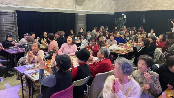 合間にはみんなで持ち寄ったお菓子で茶話会です。会場も和やかな雰囲気になります。