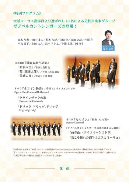 続いて登場したのは、選ばれし10名の指導員で構成される「ザ♂ベルカントシンガーズ」です。