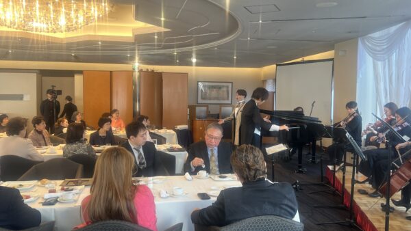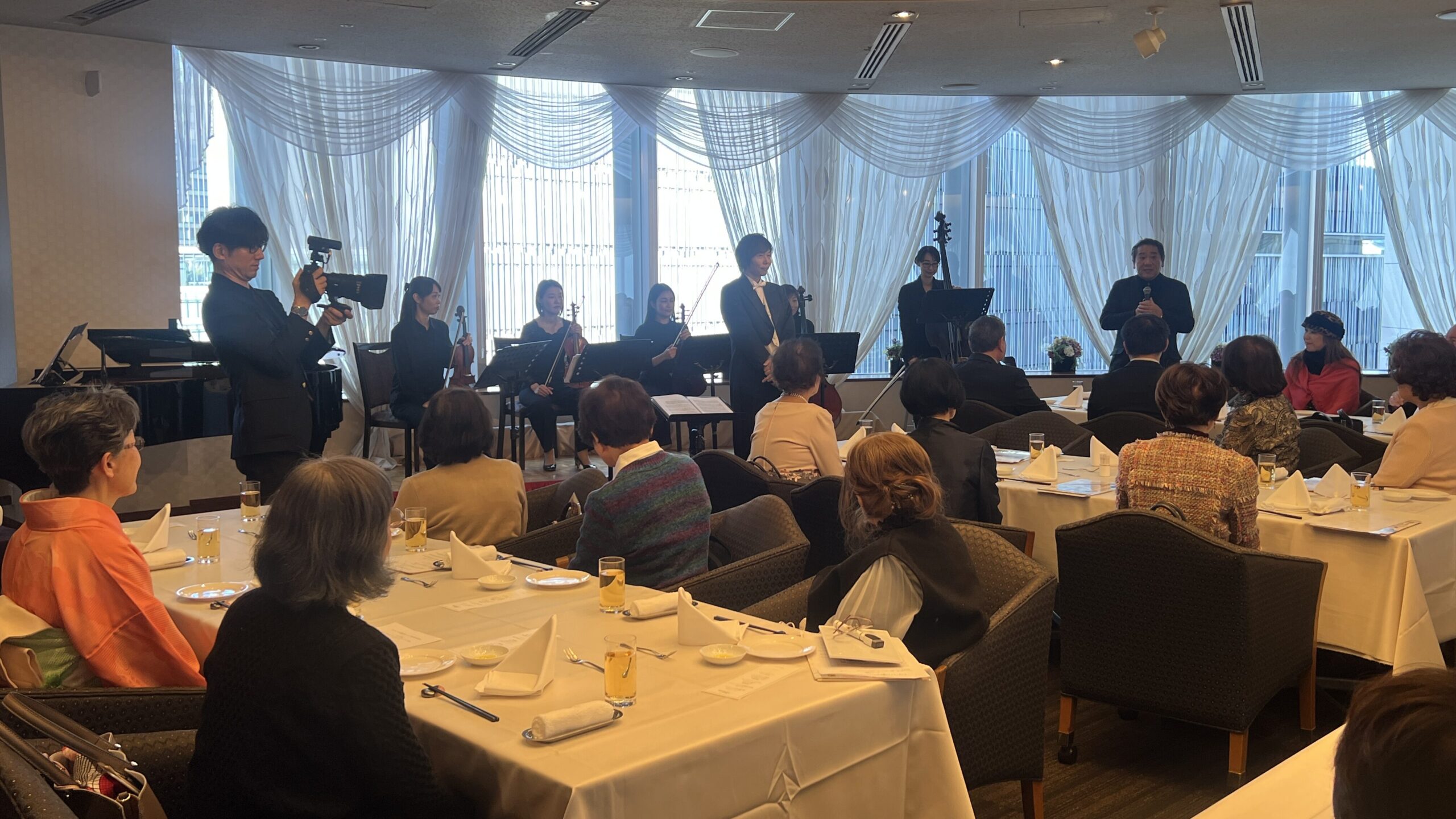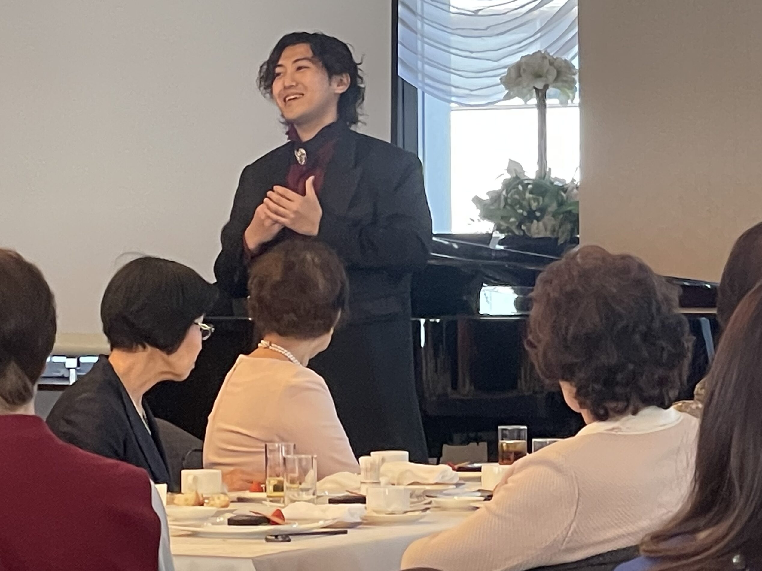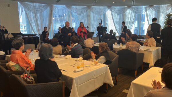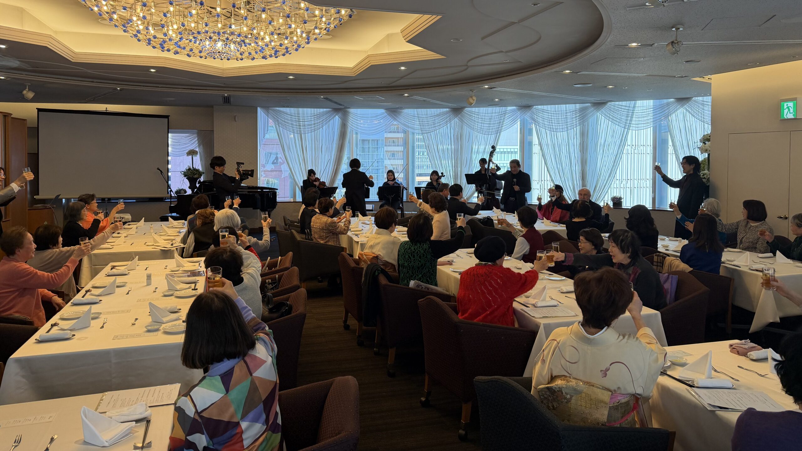 今回のパーティーには、世界的なテノール歌手、マエストロ・ヴィットーリオ・テッラノーヴァ先生を特別ゲストとしてお迎えしました 。また、ミラノ在住のソプラノ歌手、住吉恵理子先生には通訳を務めていただき、マエストロと共に素晴らしいご挨拶をいただきました 。