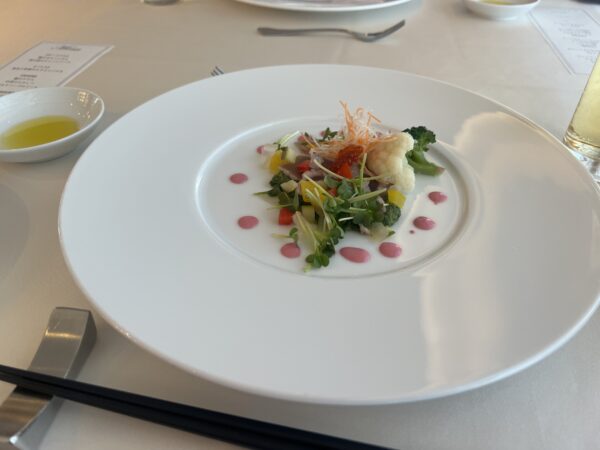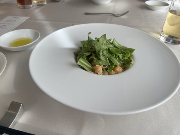うえたく先生の挨拶と乾杯の発声で、楽しい宴がスタートしました 。美味しいお料理が配膳される中、スクリーンでは2025年イタリア演奏旅行の思い出深い映像が上映され、当時を懐かしんでいらっしゃいました。