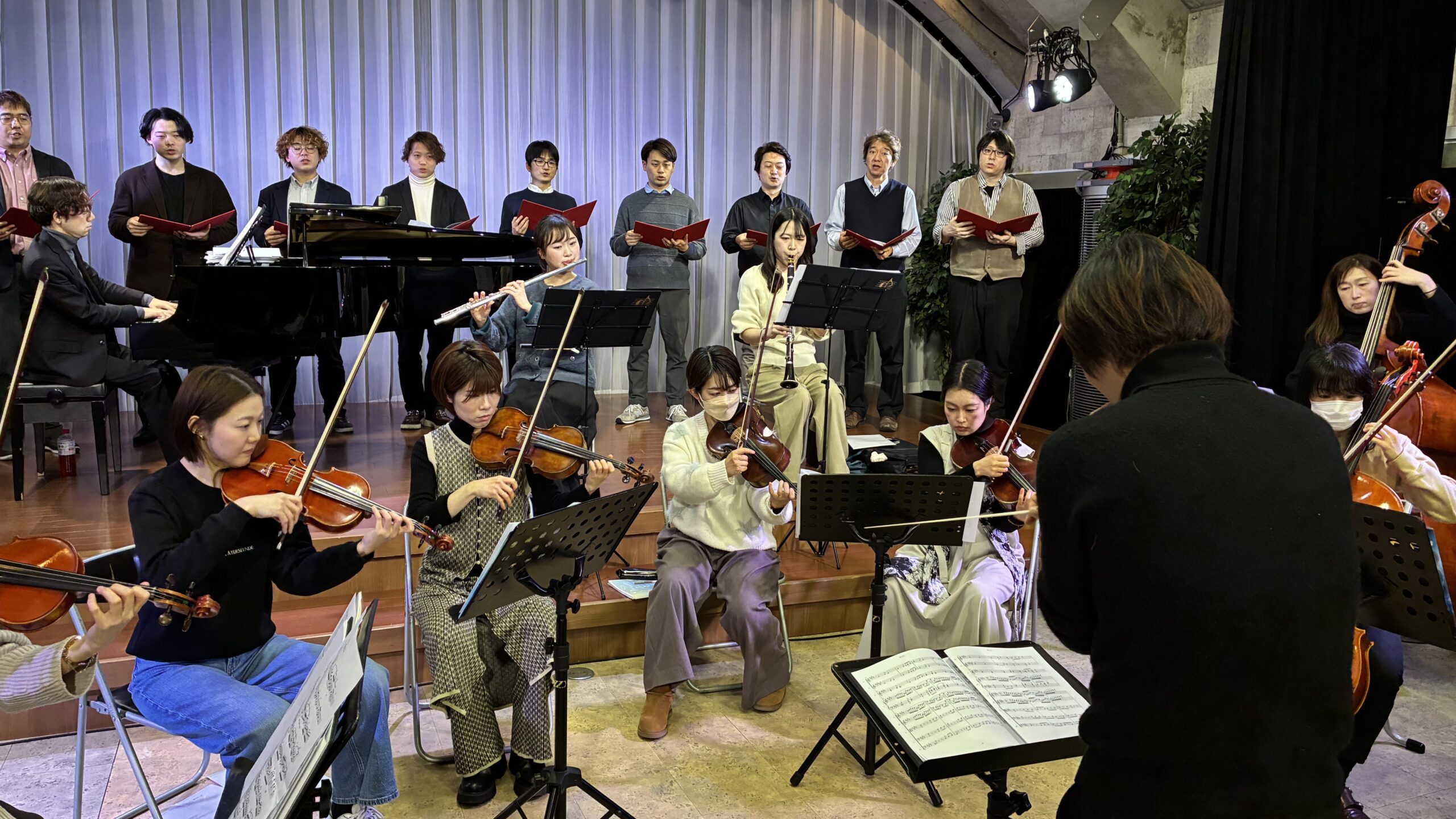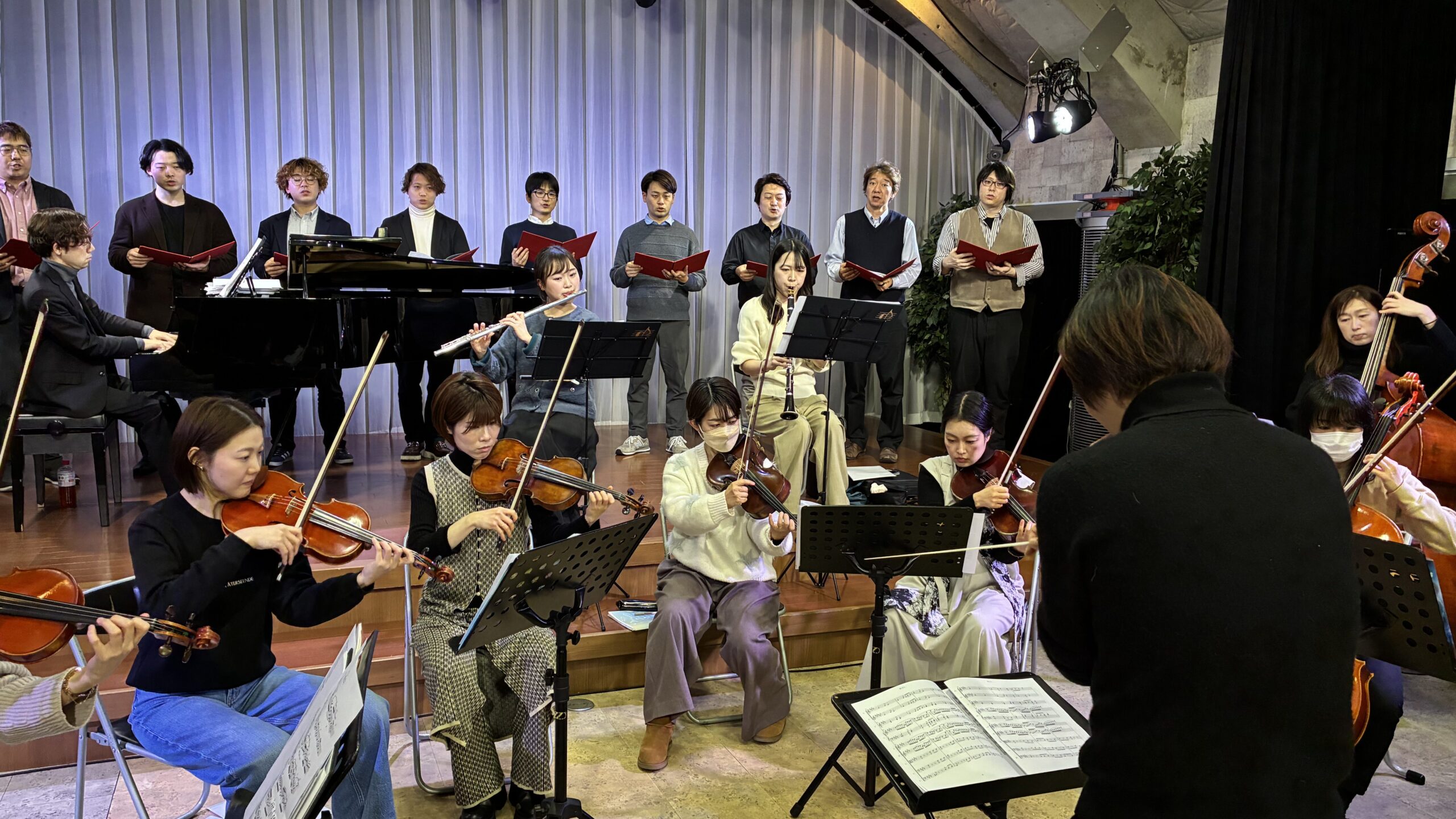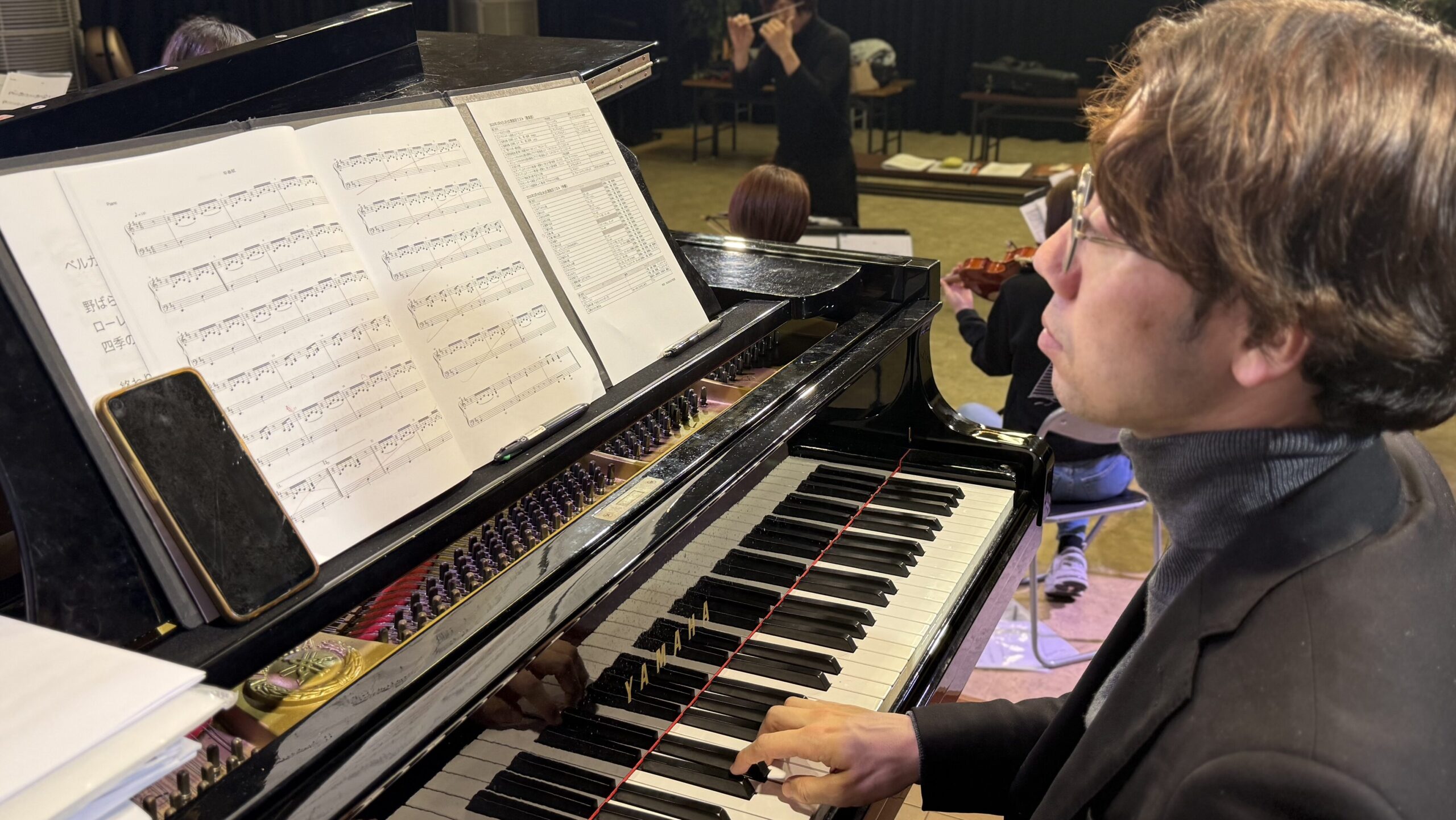 2026年2月某日の夜、神戸みんなのホールにおきまして、ワンディ!ピアノ管弦楽アンサンブルオーケストラのリハーサルが行われました。来たる2月10日(火)メリケンパークオリエンタルホテルで開催される「みんなの音楽会&童謡コーラスの歌仲間による早春パーティー2026」(クラシック音楽の魅了)のプログラムのリハーサルで、東京から我らがピアニスト、作編曲家のウッチーこと、内田清孝も参戦します。