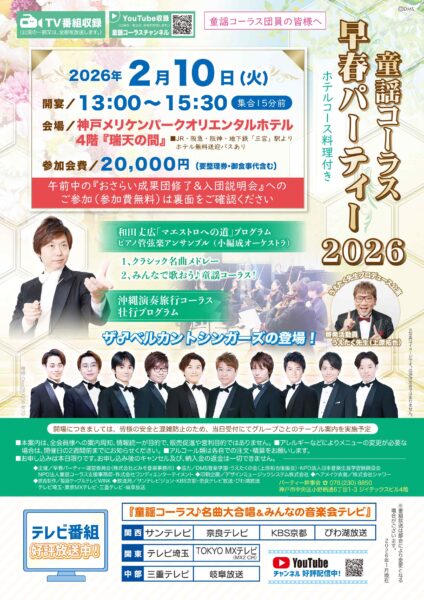 さぁ、来たる2月9日(月)午後は、ワンディクラスの「西洋古典音楽リサイタル〜チェンバロと管弦楽の饗宴〜」、翌日の10日(火)メリケンパークオリエンタルホテルで開催される「みんなの音楽会&童謡コーラスの歌仲間による早春パーティー2026」(クラシック音楽の魅力)、翌日からは沖縄演奏旅行で、琉球交響楽団のメンバーの皆さんをはじめ、ウチナーの音楽家とのコンサート3公演が予定されています。