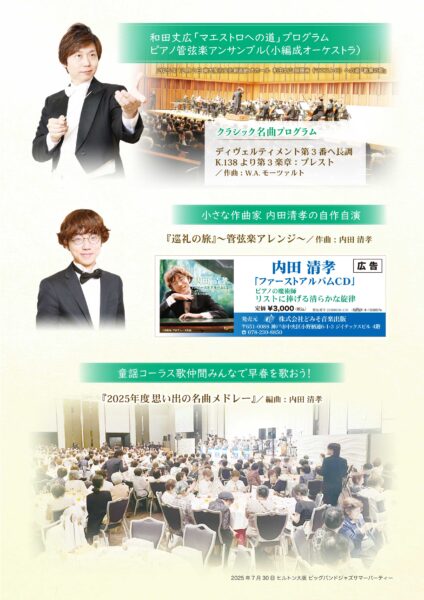 午前中の「おさらい成果発表団の2025年度卒業修了式」の収録会を経て、お祝いムード一色、優雅な管弦楽のクラシックプログラムで盛会となりました。
