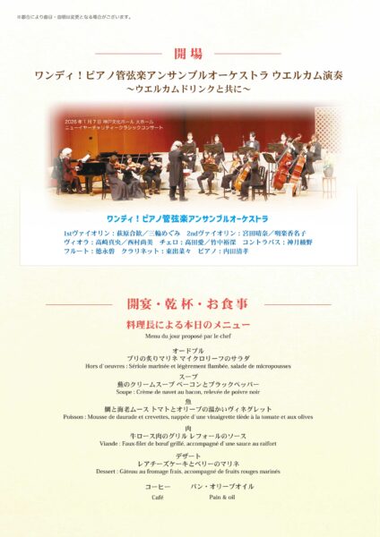 本日はご多用の中、また、寒い寒い中、初の開催となる「春を呼ぶ集い!早春クラシックパーティー2026」にご来場賜りまして誠にありがとうございました。また、ワンディこと我らがマエストロ、指揮者和田丈広が率いるワンディ!ピアノ管弦楽アンサンブルオーケストラによるクラシックプログラムでは、演奏研究員として研鑽中の若き音楽家らに舞台発表、共演のチャンスを賜りまして、さらには、最後の最後まで、拍手と歓声、ご支持ご支援をいただき重ねて御礼申し上げます。今後も一層の精進をお約束して、音楽教育者として、音楽家として成長を続けます。今後もどうぞ宜しくお願い申し上げます。