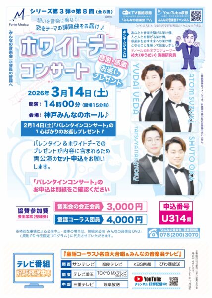 2026年2月10日(火)メリケンパークオリエンタルホテルにおいて、みんなの音楽会と童謡コーラスの歌仲間による春を呼ぶ集いとして、「早春クラシックパーティー2026」が行われました。