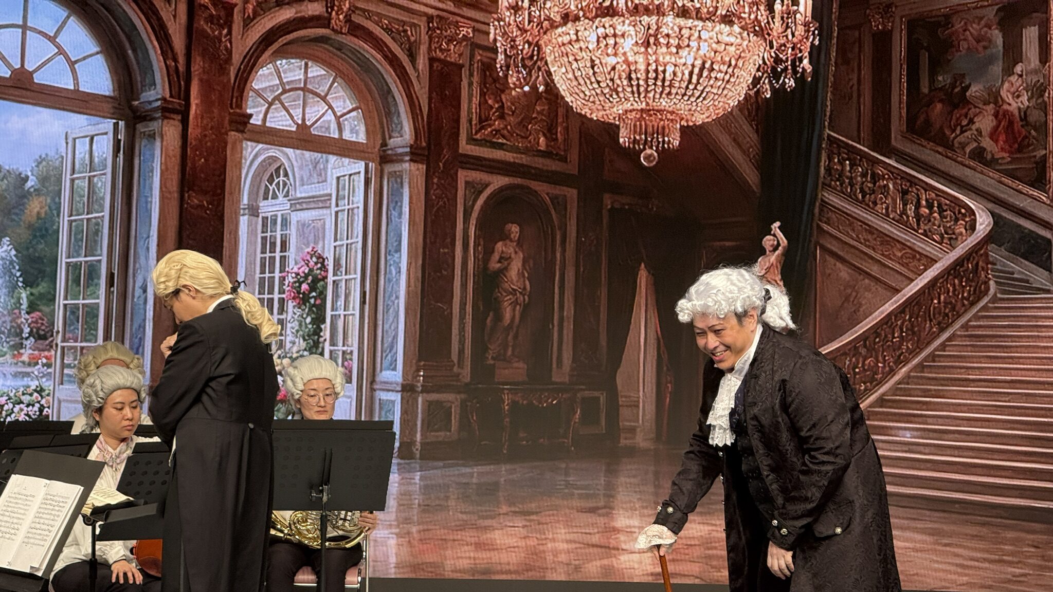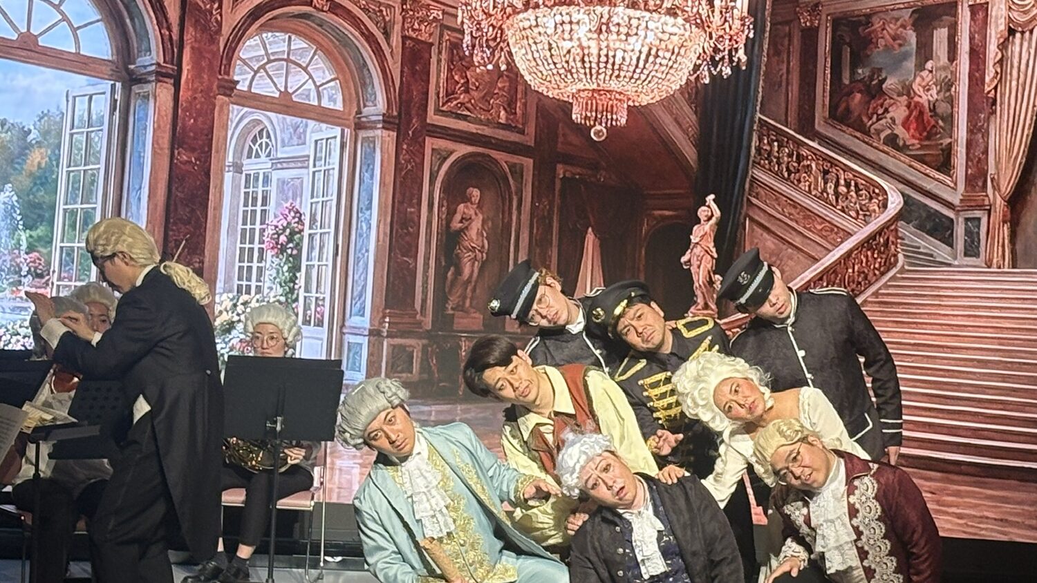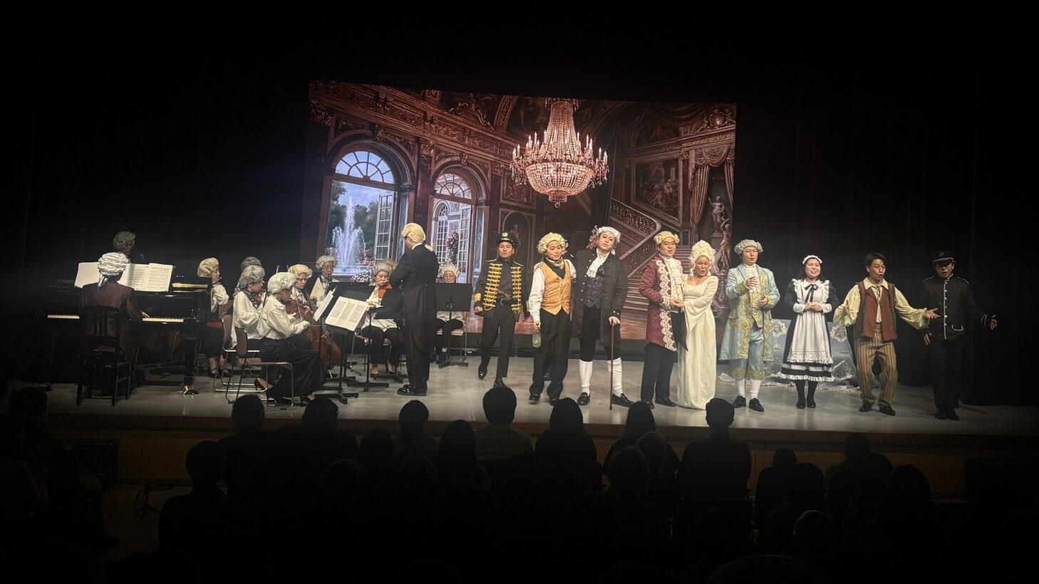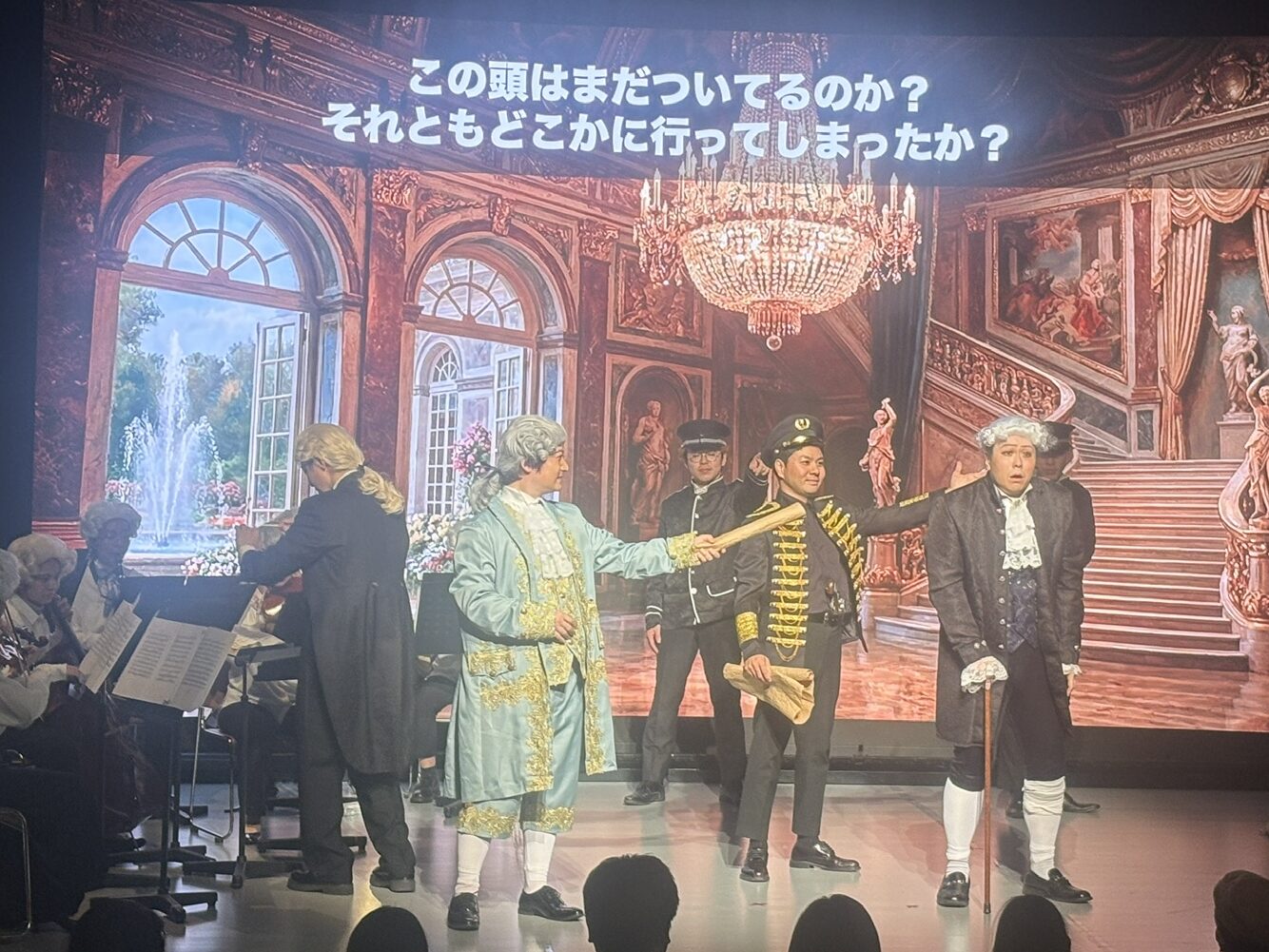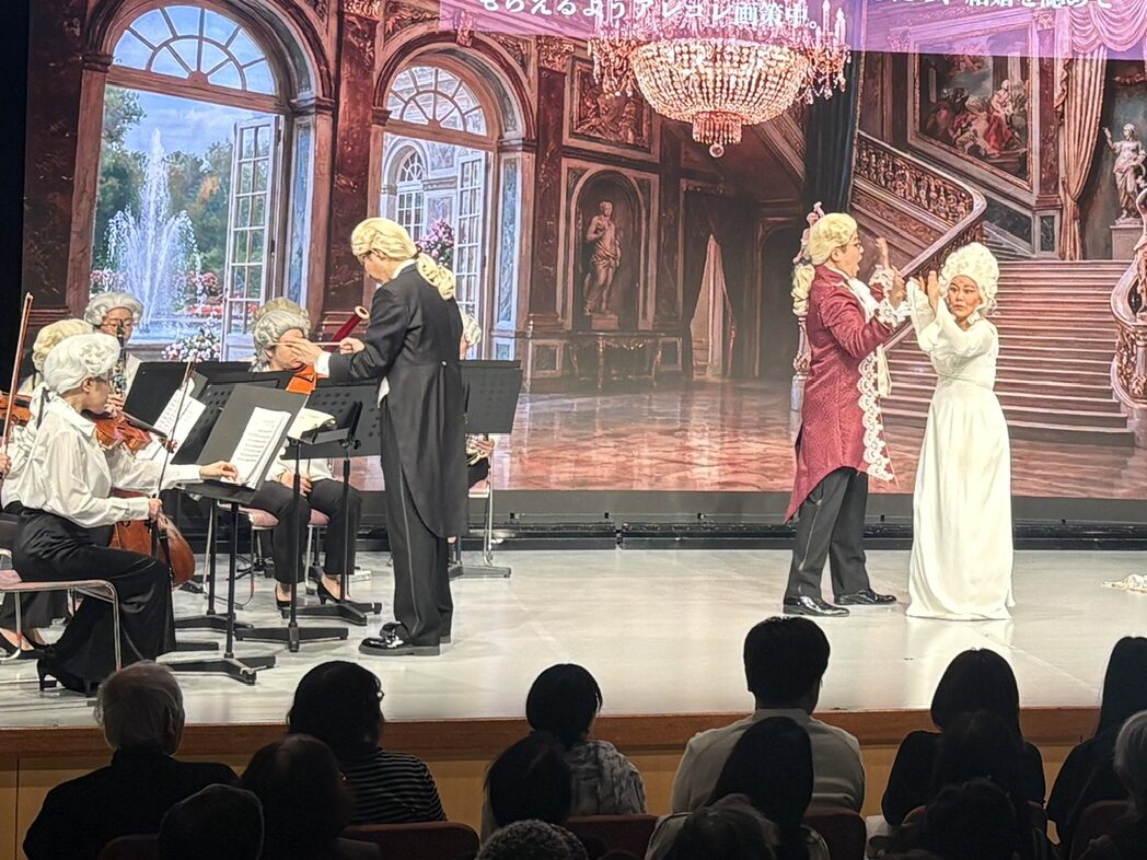 関東・関西・中部から沖縄に渡った団員の皆様、そして、初めて童謡コーラスに参加した沖縄の方々で会場内はいっぱい!今回はオーケストラの方々も役者の一人として、欧州貴族のようなかつらを被り、演奏をお届けしました。