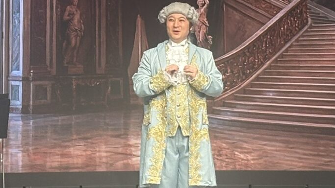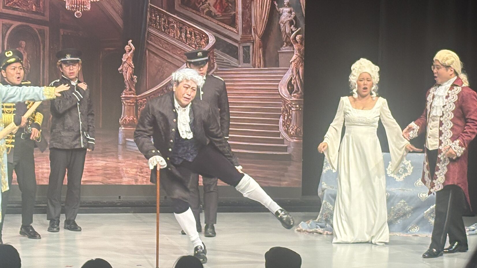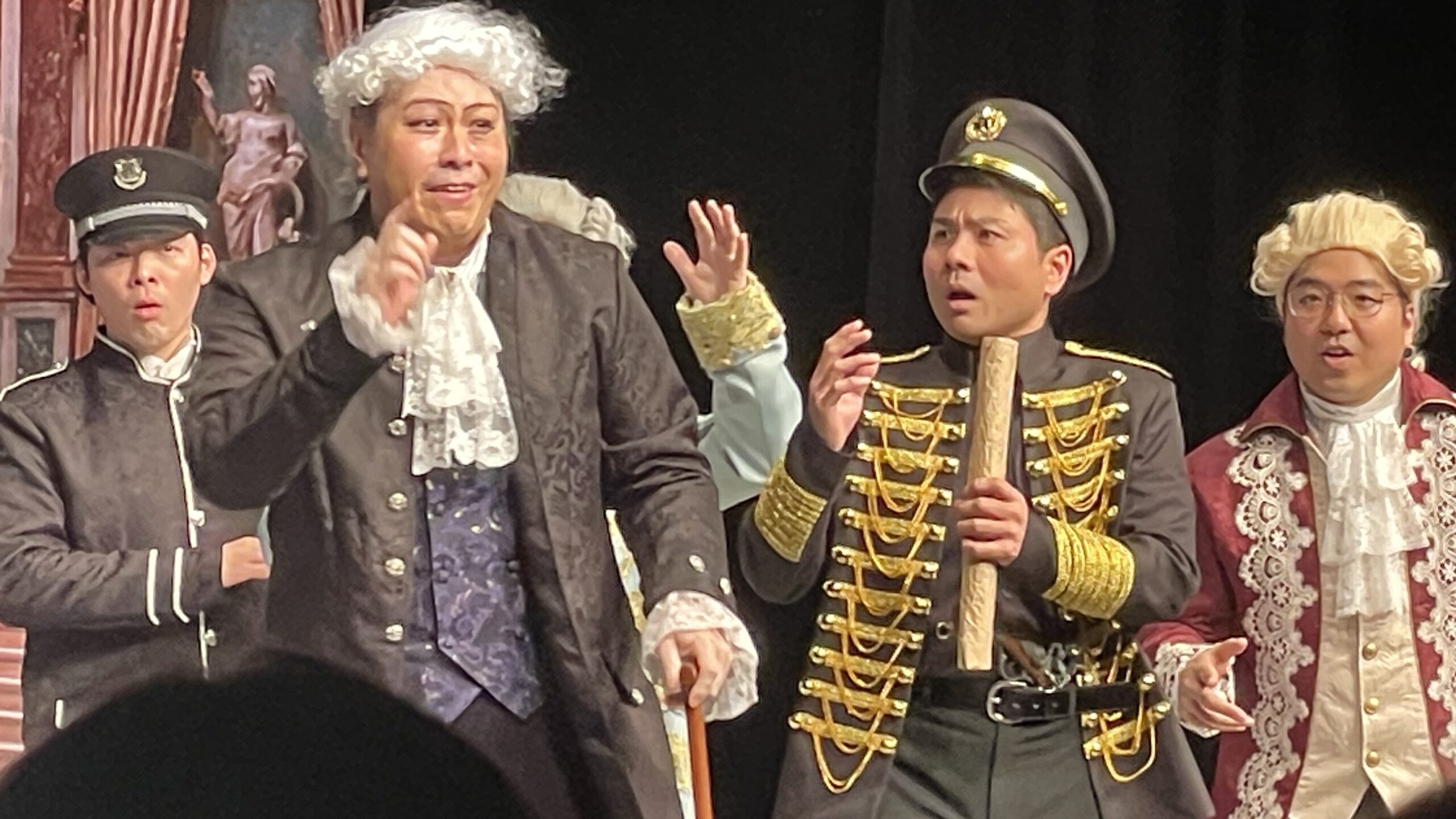 恒例となったガウデンツィオ役の着替えシーン。もちろん沖縄でも披露いたしました!