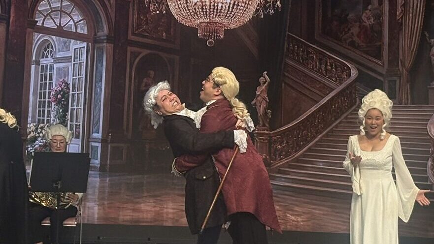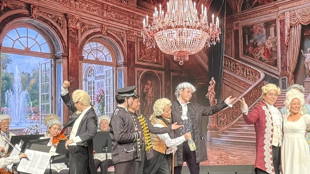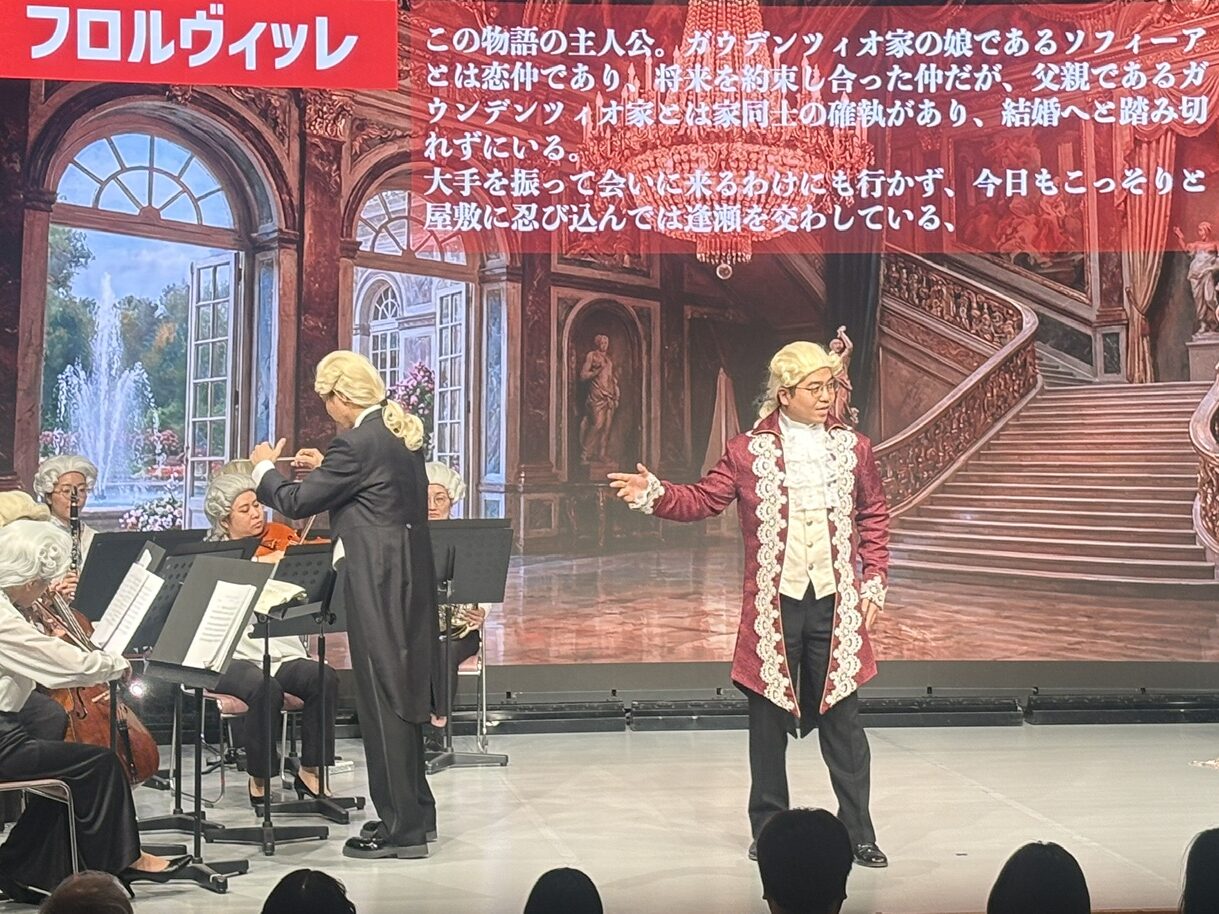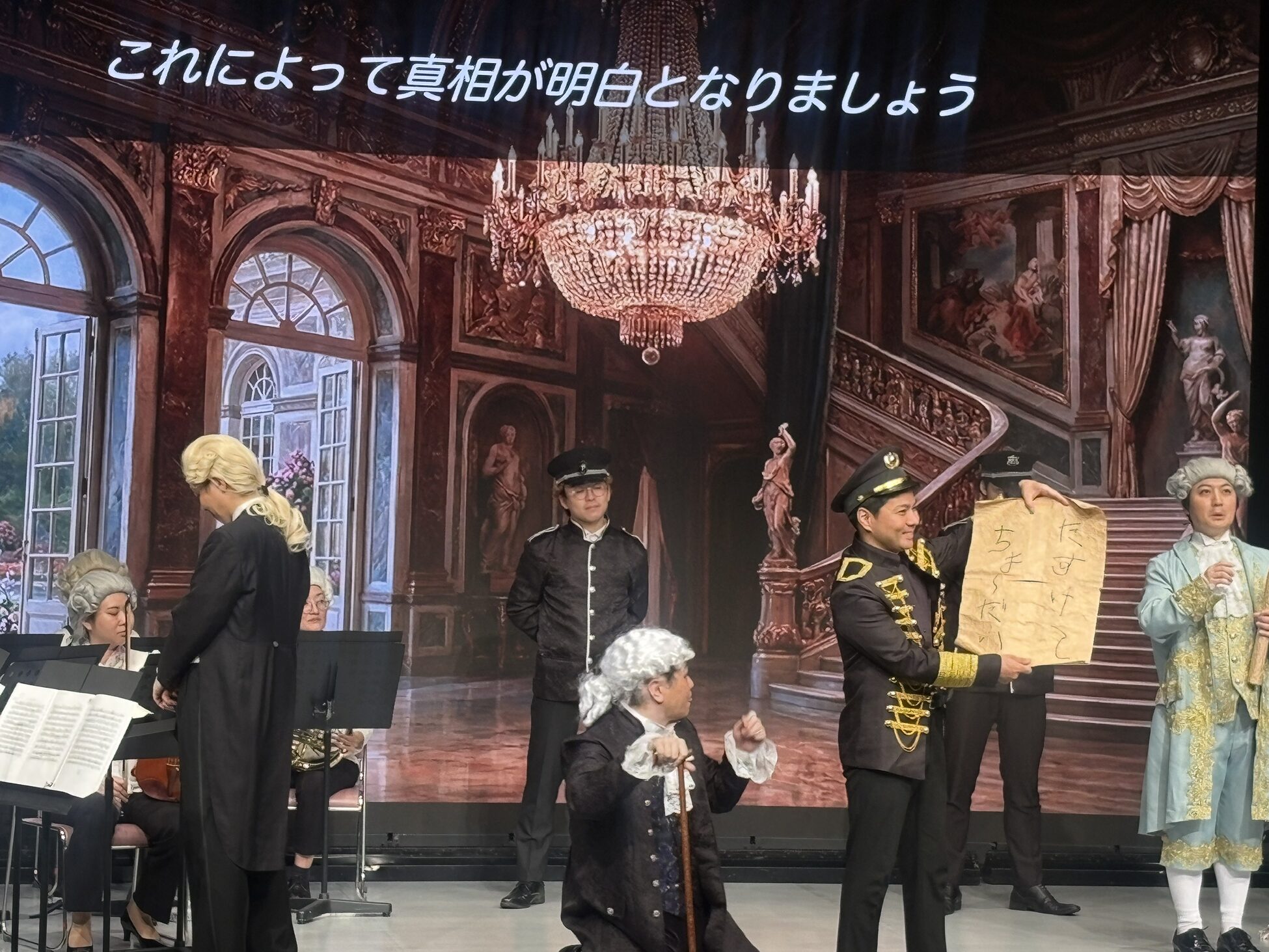 流れるように最終楽曲へ。本物のブルスキーノの息子が登場し、いよいよ舞台は大詰めに。息子を騙り、いとこを騙り、そこに本物が出てきて、手紙の行方がどうであって・・・なかなか入り乱れるストーリーですが、今回はサイネージの字幕もあり、初見の方からも理解しやすかったとご感想を伺っております。