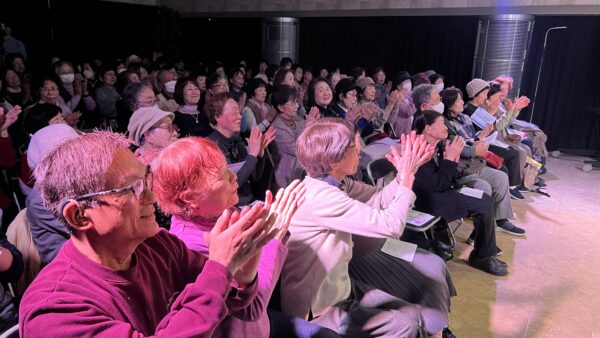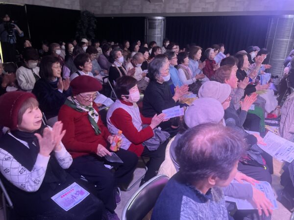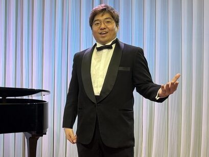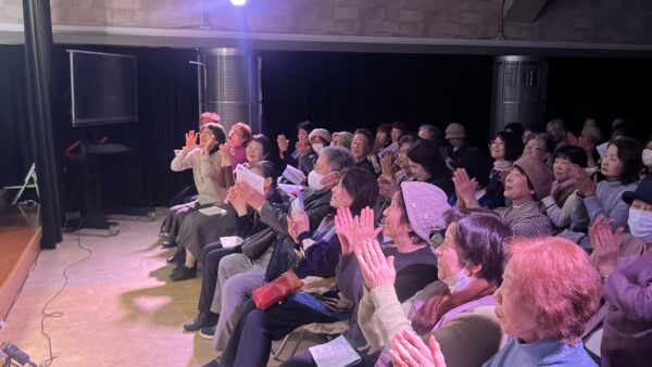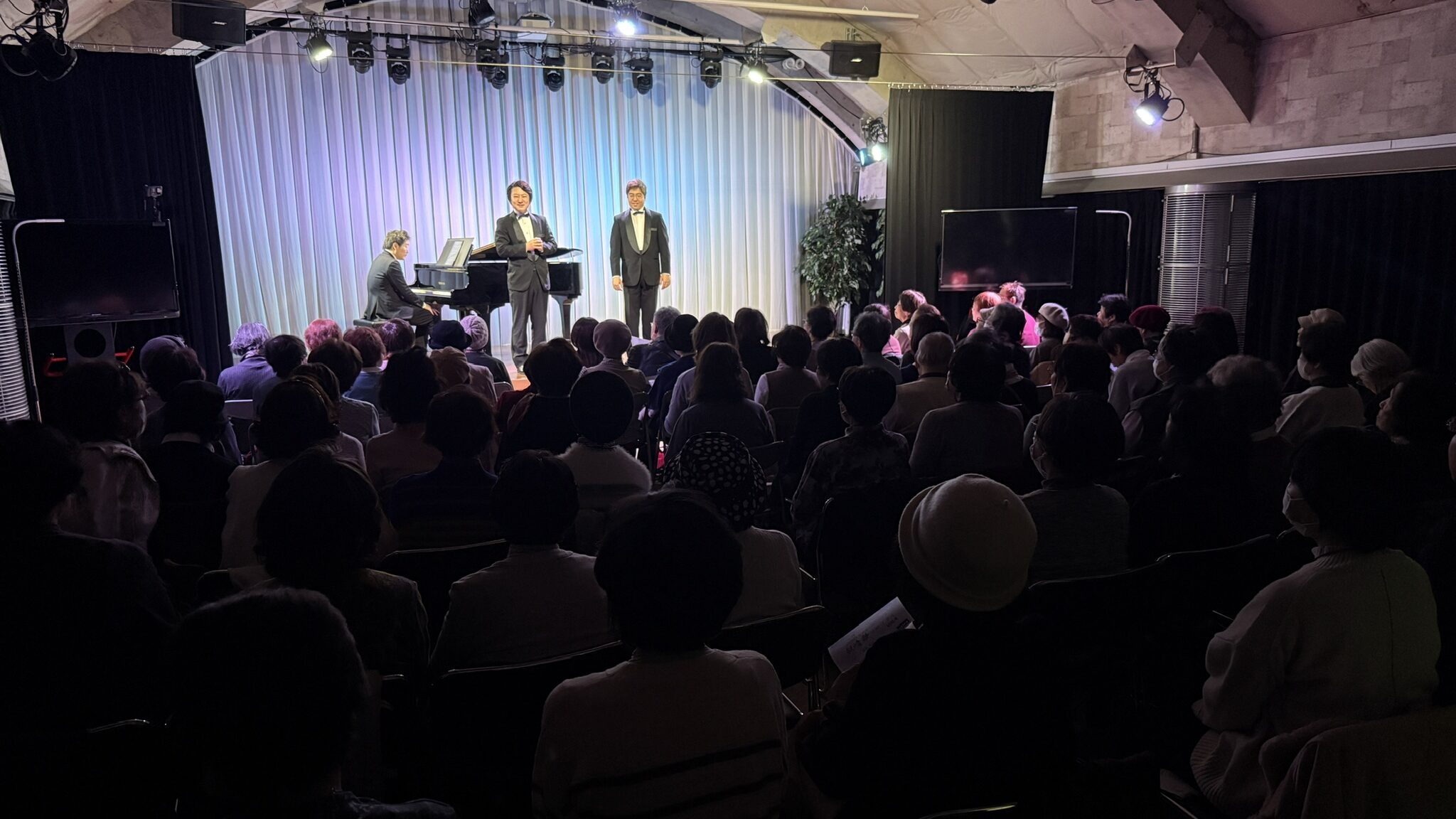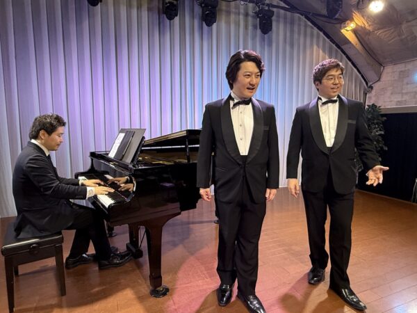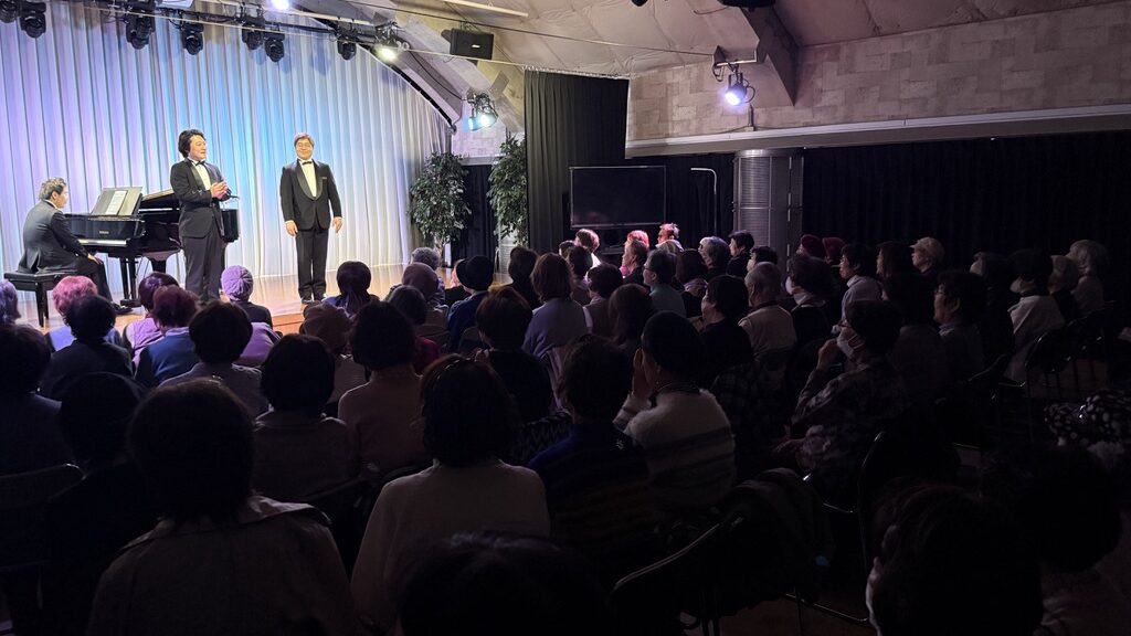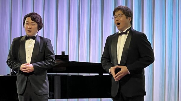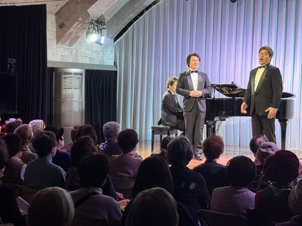 本公演は、昨年11月の公演から4か月ぶりとなる第4回で、シリーズとして定着しつつある、上拓先生推しの注目のリサイタルです。東京藝術大学の先輩・後輩でもある二人が、声楽の魅力と二重唱をテーマにプログラムを構成しました。みんなの音楽会の正会員の皆様をはじめ、各地区の童謡コーラスの支援者の皆様、そしてお二人の熱烈なファンの皆様、あわせて100名が来場されました。会場は拍手喝采で、「ブラーボ!」「ブラービ!」の大きな声援に包まれ、盛況のうちに幕を閉じました。合掌